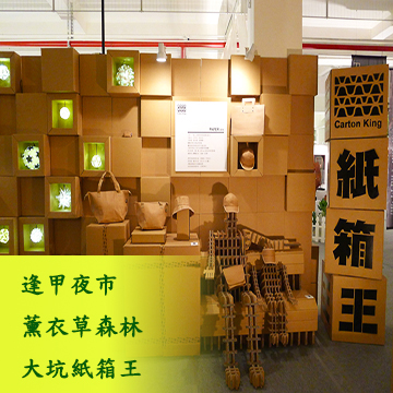 台中紙箱王薰衣草森林東東芋圓逢甲夜市包車一日遊行程規劃:紙箱王的創意紙作天堂,欣嘗各式用紙創作出的紙品,如椅子、動物、桌子...等體驗薰衣草森林裡的悠閒氣氛與手作的香製品,逢甲夜市讓您從夜市頭吃到夜市尾,美味小吃相當多樣,每個攤子都吃保證讓你有滿足感又不會讓你吃不飽,花少少錢吃到飽。在地美食"焗烤馬鈴薯"、"珍珠奶茶"、"香酥雞排"、"奶香木瓜牛奶"、"章魚小丸子"、"茶葉蛋"與各式小吃。(資料來自網路)。